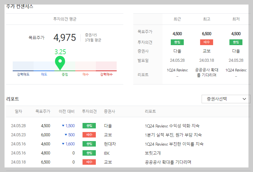 금호건설 목표주가