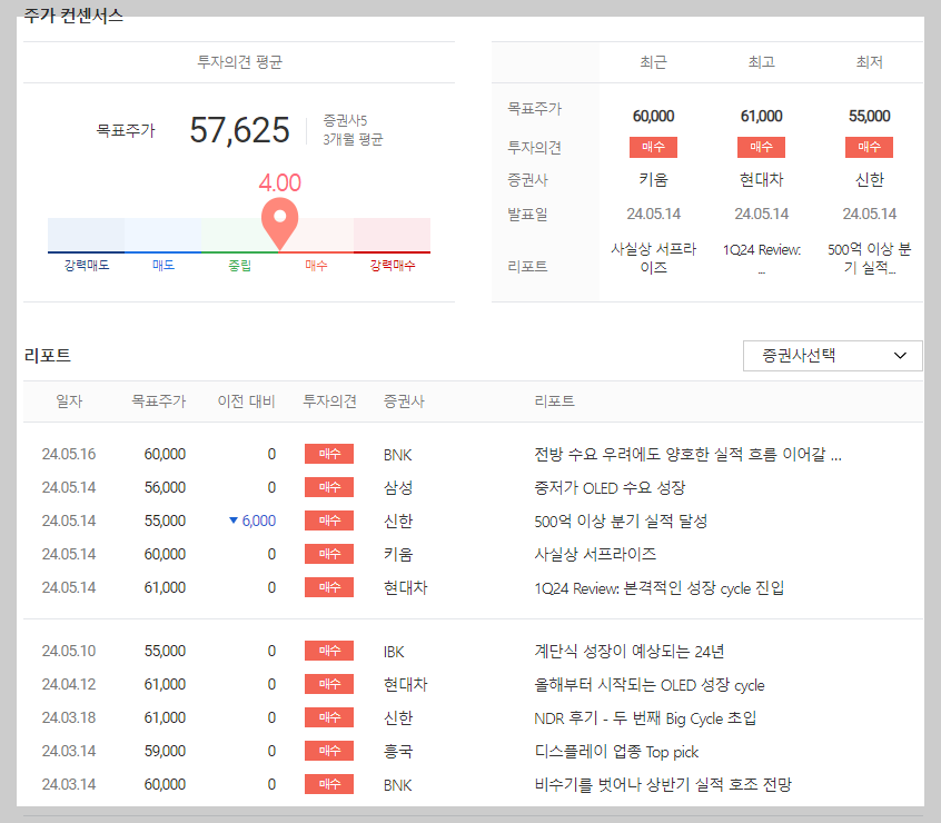 -2023년 12월 전년동기 대비 연결기준 매출액은 7.3% 감소, 영업이익은 26.6% 감소, 당기순이익은 8% 감소. 글로벌 경기 침체에 따른 Hand Set을 비롯한 세트 수요의 부진에 따른 감산(재고조정) 영향 등으로 인해 2023년 영업실적은 전년 동기 대비 부진 했음. 동사는 향후 IT OLED 시장 개화 등에 따라 향후 점진적 성장을 기대하고 있는 상황임.
