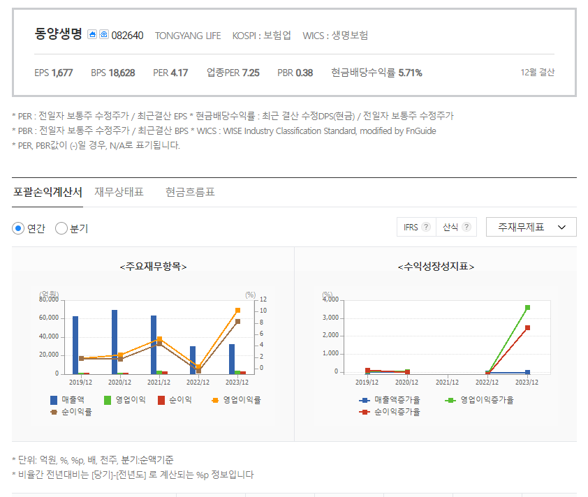 동양생명 재무 분석