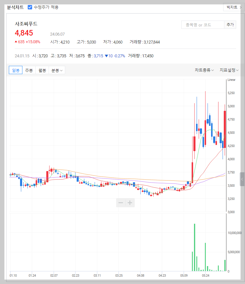 사조씨푸드 주가 분석