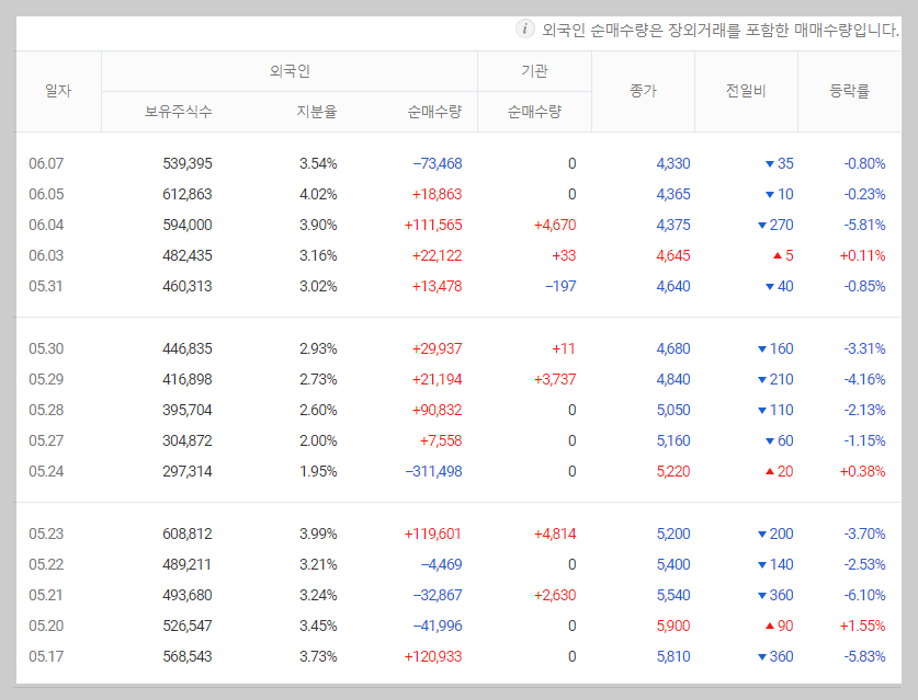 그래서 개인 투자자는 기관이나 외국인 세력을 따라 움직이며, 세력이 약해도 어떤 걸 사고팔아 이익을 창출합니다. 기관 투자자를 따르는 추세가 최근에 더욱 두드러지며, 이는 외국인의 매수가 불안정하고 개인의 단기 거래가 기관과 비슷한 양상을 보이기 때문입니다.