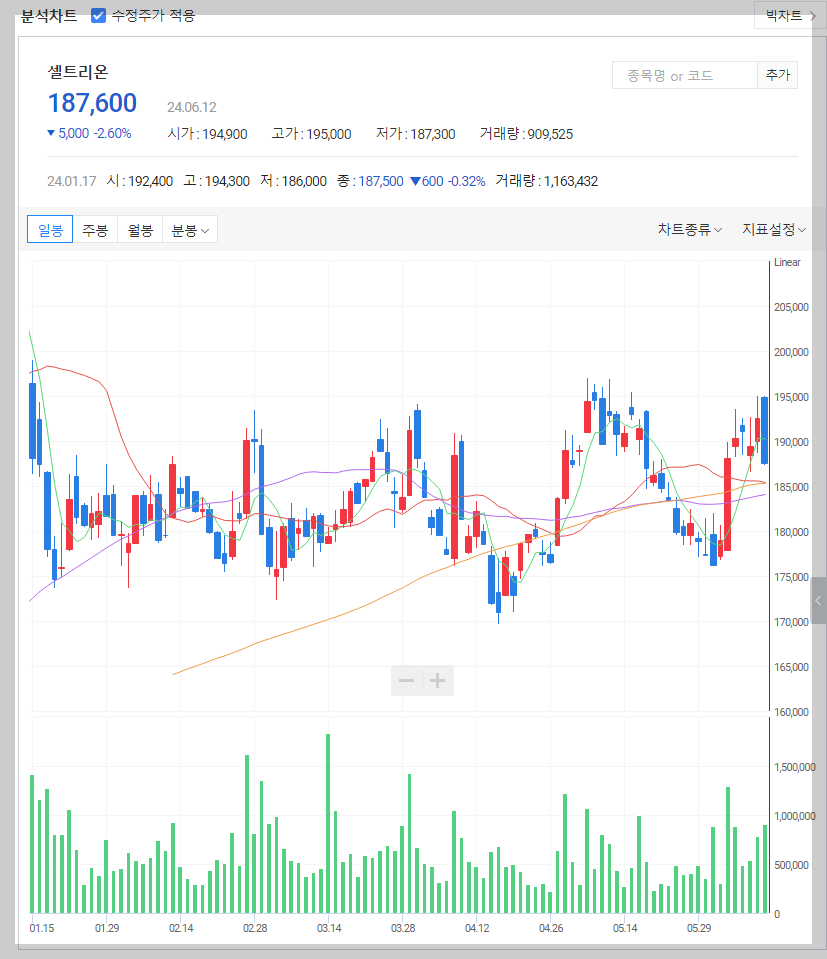 셀트리온 주가 분석
