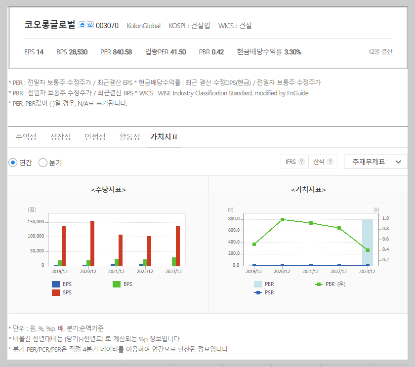 코오롱글로벌 가치 분석