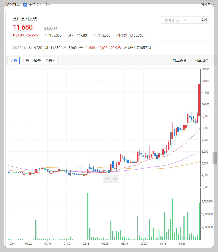 토마토시스템 주가 분석