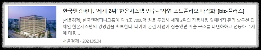 이 글에서는 한온시스템 주가 전망과 목표 주가, 기업 정보에 대해서 설명합니다. 주식 시장에서 중요한 것은 미래의 기업 가치를 예측하고 선제적으로 움직이는 것입니다. 투자할 종목을 고르기 전에 현재 기업의 현황과 데이터를 확인하는 것이 필요합니다. 한온시스템 주식의 주요 현황과 투자 정보를 확인하시고 주식 투자를 고민하고 계시다면 유용한 정보들을 모아 놓은 자료를 확인해 보세요..