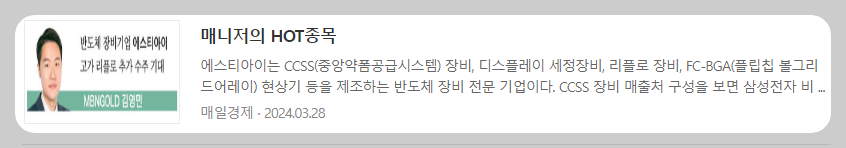 | 티사이언티픽 주가 전망 목표 주가, 가상화폐 관련주 (0) | 2024.05.16 |