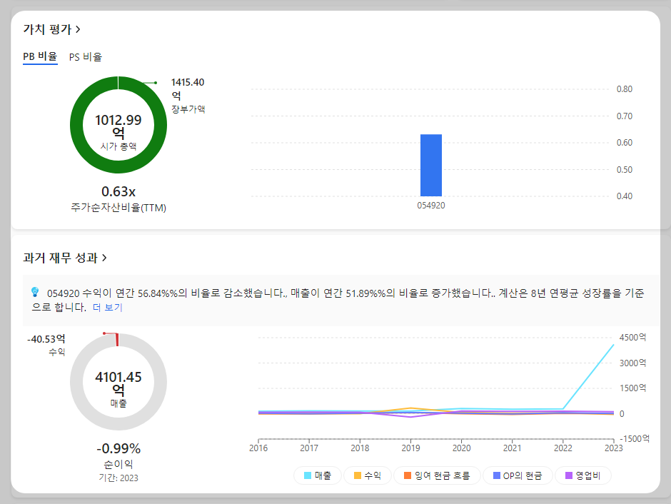 -2023년 12월 전년동기 대비 연결기준 매출액은 1,328.8% 증가, 영업손실은 257.5% 증가, 당기순이익은 86.8% 감소. 매출이 1,328.8% 증가했으나 영업손실이 257.5% 확대되며 당기순손실 546억 원으로 적자 전환함. 사업 부문별로는 기타 사업 매출이 크게 증가함. 매출액영업이익률은 회복세를 보이고 있으나 당기순이익은 여전히 관계기업에 영향을 받고 있음.